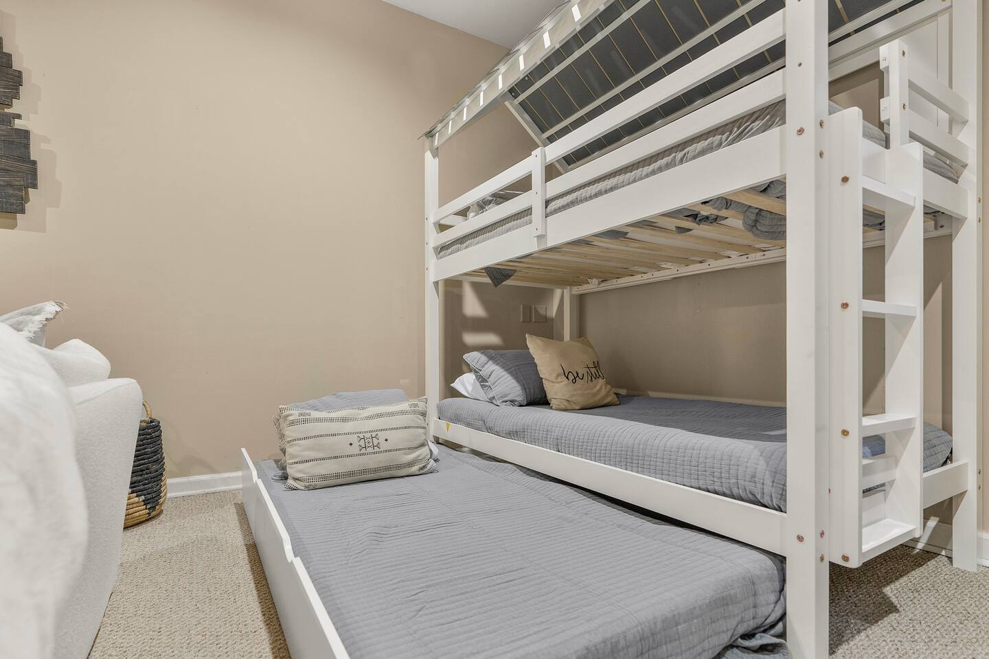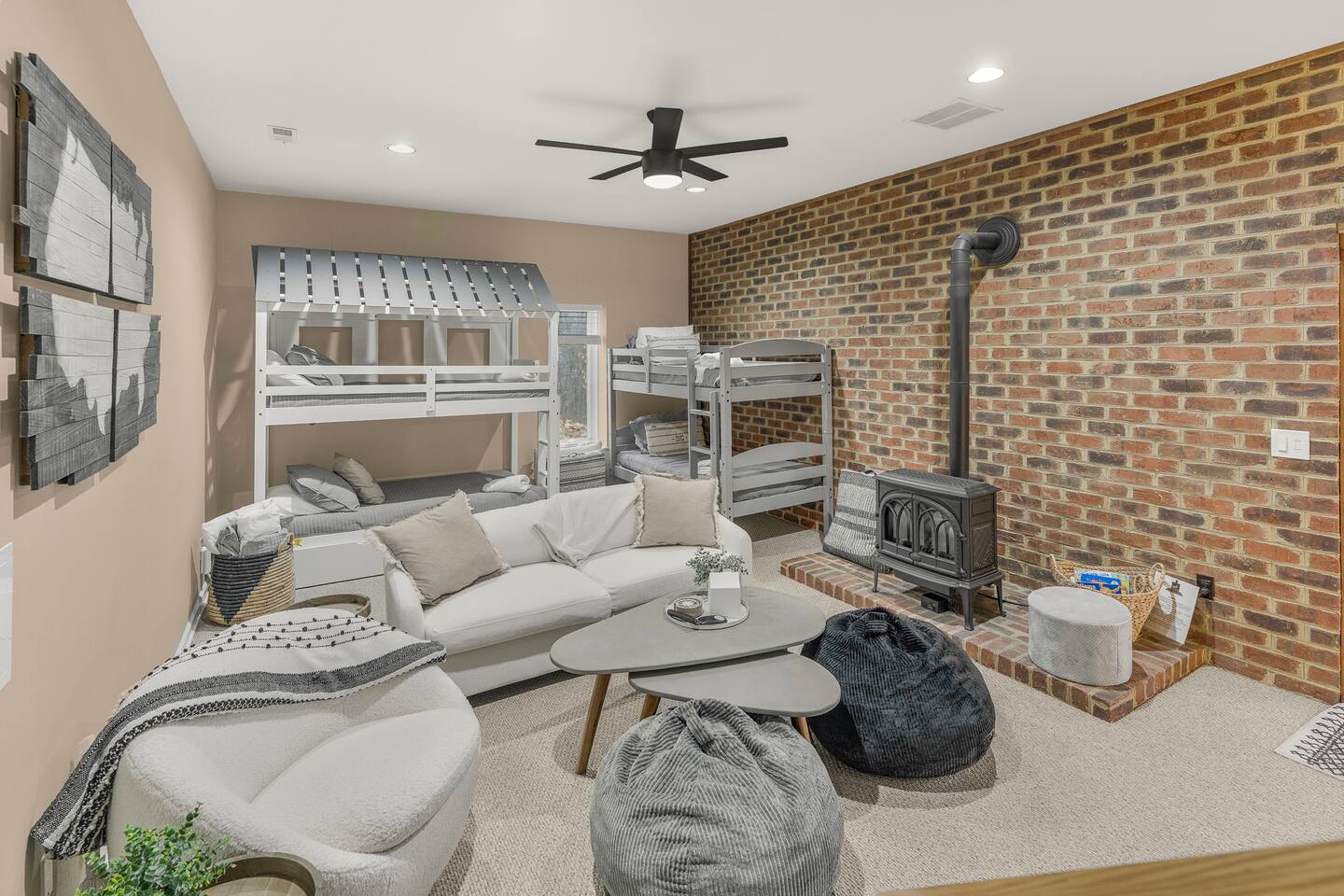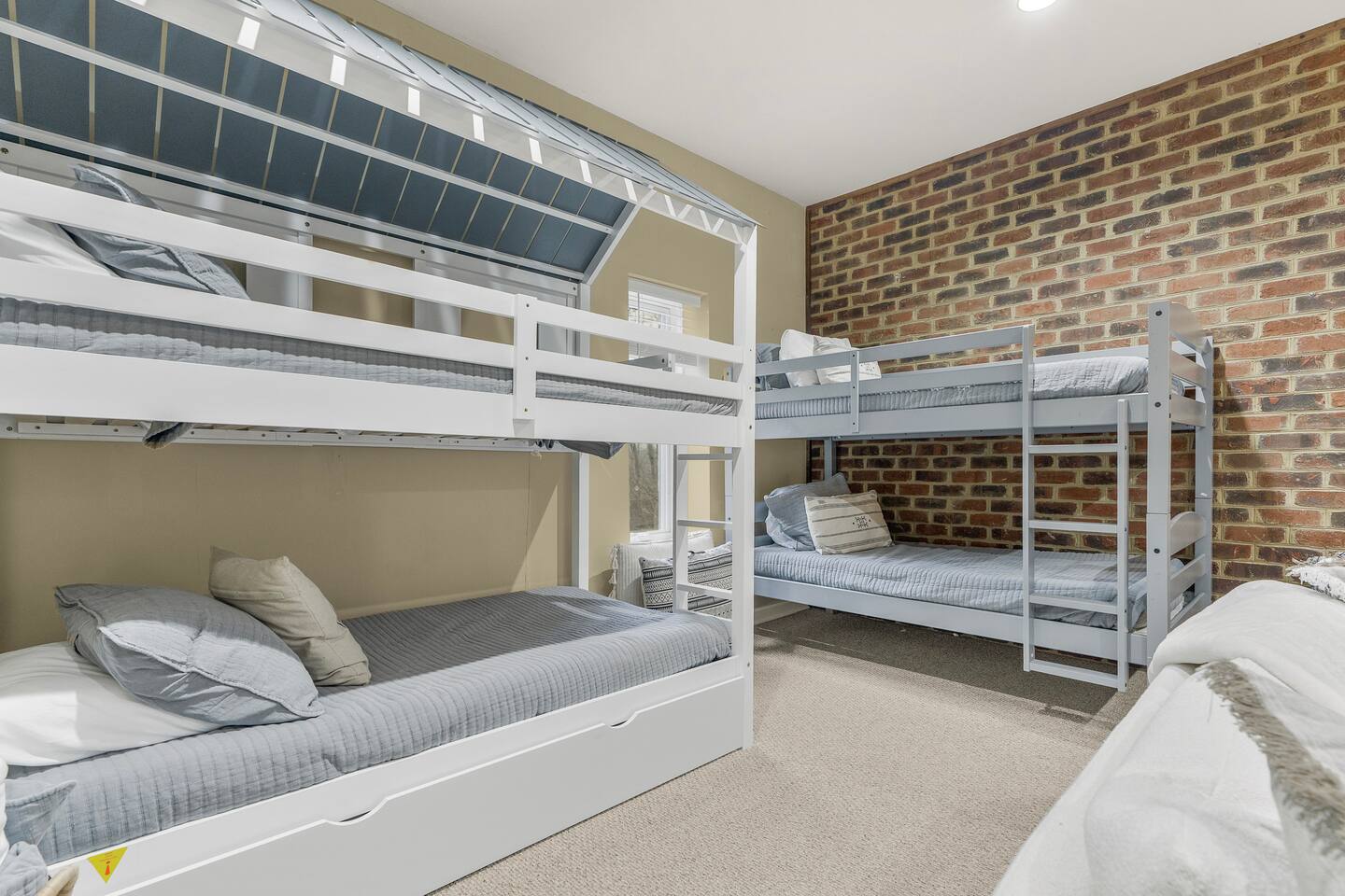 The home layout is as follows: Upper level: BR1: Primary bedroom suite with king bed, sitting area, and ensuite bathroom with dual vanities, shower, and soaking tub Main level: - Great room with large TV and propane fireplace, open to dining area - Dining table seats 8, plus the eat-in kitchen has a table that seats 6 more - Kitchen is fully stocked with everything needed to prepare meals. Ground coffee and k-cups provided. - BR2: King bedroom - BR3: Queen bedroom - Hall full bath with shower/tub combo - Screened in porch with comfortable seating around propane fire table, plus dining table for 4. - Small deck with grill - Game room in converted garage with air hockey, shuffleboard, foosball, arcade game, and couch/TV area. This room does have both heat and A/C. Lower level: - BR4: bunk room / additional living room with 2 sets of twin-over-twin bunks, plus a twin trundle. Sitting area with TV - Half bath - Access to hot tub area, plus a conversation set with seating for 4 Things to do nearby: The house is about an 8 minute drive to the slopes, pool, and dining at Massanutten, 6 minutes to the spa, and 2 minutes to the indoor/outdoor Waterpark. The Swift Run Gap entrance to Shenandoah National Park is 15 minutes away with some of the best hiking on the east coast. JMU and everything else in Harrisonburg is 20 minutes away, and there are several breweries, wineries, and restaurants within 15 - 20 minutes of the house. Other things to note: - We provide our guests $1,500 of coverage for accidental damage to the property or its contents. The cost of this is already embedded in the cleaning fee. - Massanutten offers hiking, skiing, snowboarding, tubing, swimming, dining, spa, ropes course / zip line, golfing, go carts, mini golf, and much more. - There is a flat driveway with room for 4 vehicles - Wifi is fast with a strong signal throughout the house and decks. All 4 bedrooms, plus the living room and game room, feature smart TVs where you can access all the main streaming services. - We provide a fully stocked coffee bar with multiple coffee drip and Keurig options - Guests can enjoy community pool access in the summer season for a $6 per person fee. - Linens and towels provided - Due to wildlife, trash must be taken to the Massanutten community dumpsters - We do require a separate rental agreement, which we will send a link to e-sign after you book. There are no additional fees beyond those listed here. Lastly, this property is located within an HOA that requires the community rules to be posted here, so here are those rules: WELCOME TO MASSANUTTEN! This home is in a private residential neighborhood and is part of the Massanutten Property Owners Association (MPOA), governed by its rules and regulations. There are rental homes in all MPOA neighborhoods, but people also live here. Your nearby neighbors may be full-time residents, including families with children, retirees, second-home owners and other guests enjoying their retreat. NOISE • Quiet hours: 10:00 PM - 7:00 AM. • Keep noise indoors during these hours. • No excessive noise at any time, as judged by MPOA or its assigned agents. PARKING • Keep all tires off the road. • Don't block fire hydrants or park in front of another property without written approval from your host. • Park only in designated areas or overflow lot (4,007 Peak Dr., Massanutten, VA) • No buses, campers, or RVs to be parked at homes or on roads. Overflow lot is available with written approval from your host. OUTDOOR FIRES • High wildfire risk area! • No open fires. • No unattended fires. • No firepit use during quiet hours (10:00 PM - 7:00 AM). • Firepits and grills may be restricted during local emergency conditions, check MassanuttenVillage(dot)com or electronic sign at entrance for updates. ALCOHOL No open containers on roads or in common areas. PETS • Leash always required when outside. • Clean up after your pets. TRASH • Do not place garbage/trash outside, including screened-in porches, decks or carports. Trash attracts wildlife, which could endanger you and damage the property. • Dumpsters are located at 4,003 Peak Dr., Massanutten, VA