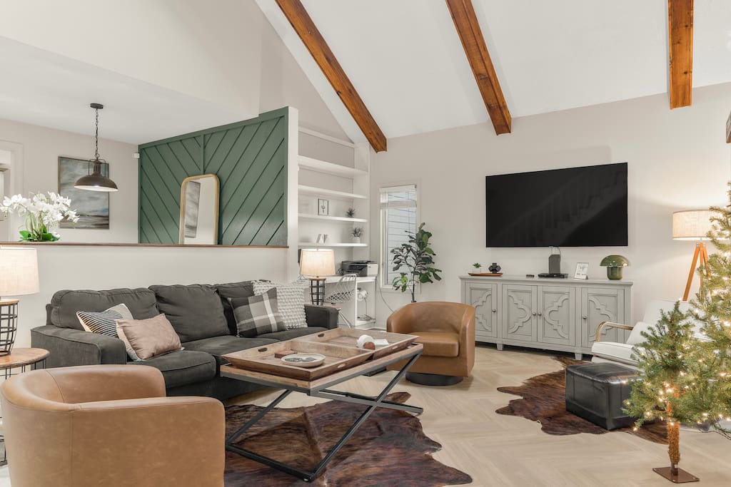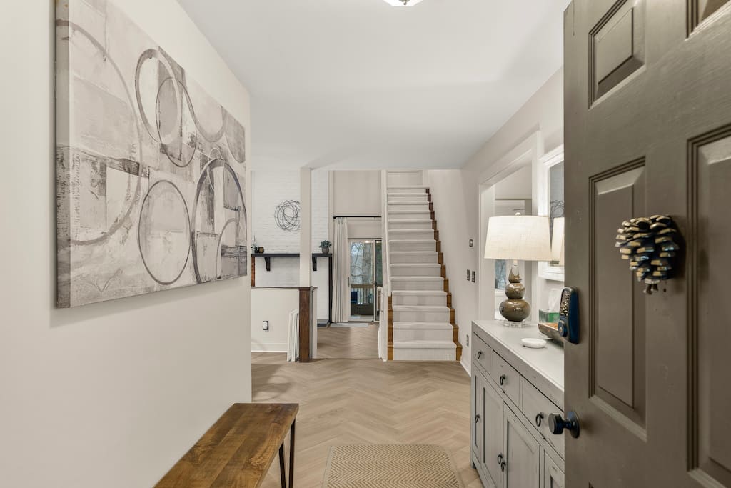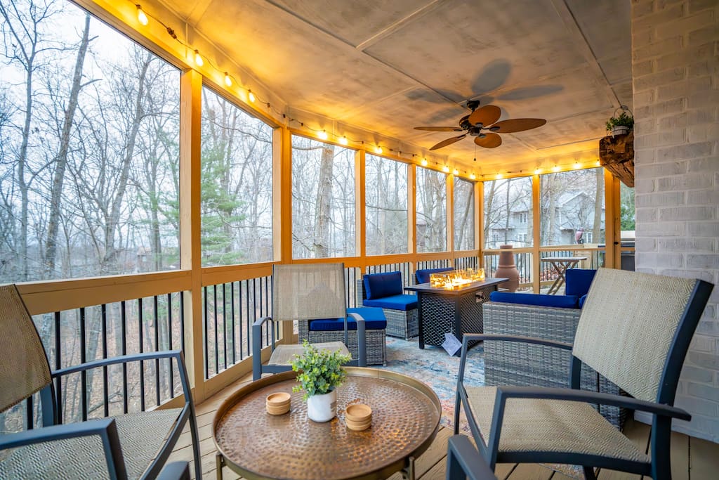New listing! Welcome to Serenity, a fully remodeled home in the heart of Massanutten Resort. Relax in the hot tub, or enjoy a meal at the outdoor table or sip wine around the firepit. Inside you'll love the open floor plan with modern decor. Downstairs is a second living room / bunk room and the garage has been converted to a game room with lots to do. Plus, pet friendly! Managed by Chris at New School Hosting- click on my profile for more reviews at other properties.